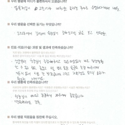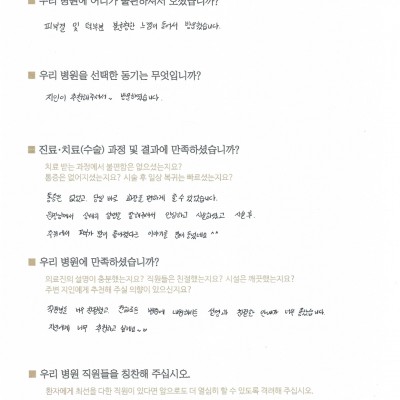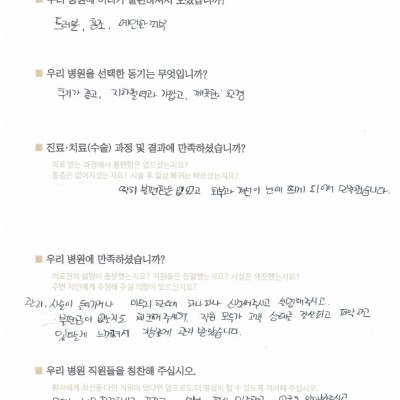"치료과정, 친절, 등 정성을 다해서 모든 분들이 보살핌으로 만족하고 감사드립니다"